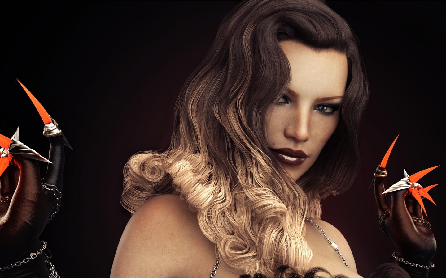 Wallpaper Beautiful 3d girl with claws in her hands