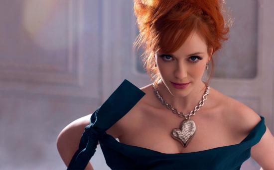 Wallpaper Heart-shaped pendant on the neck of Christina Hendricks