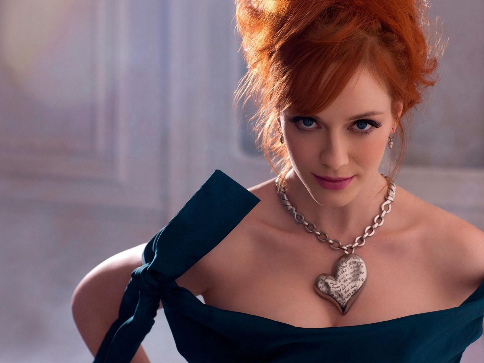 Wallpaper Heart-shaped pendant on the neck of Christina Hendricks