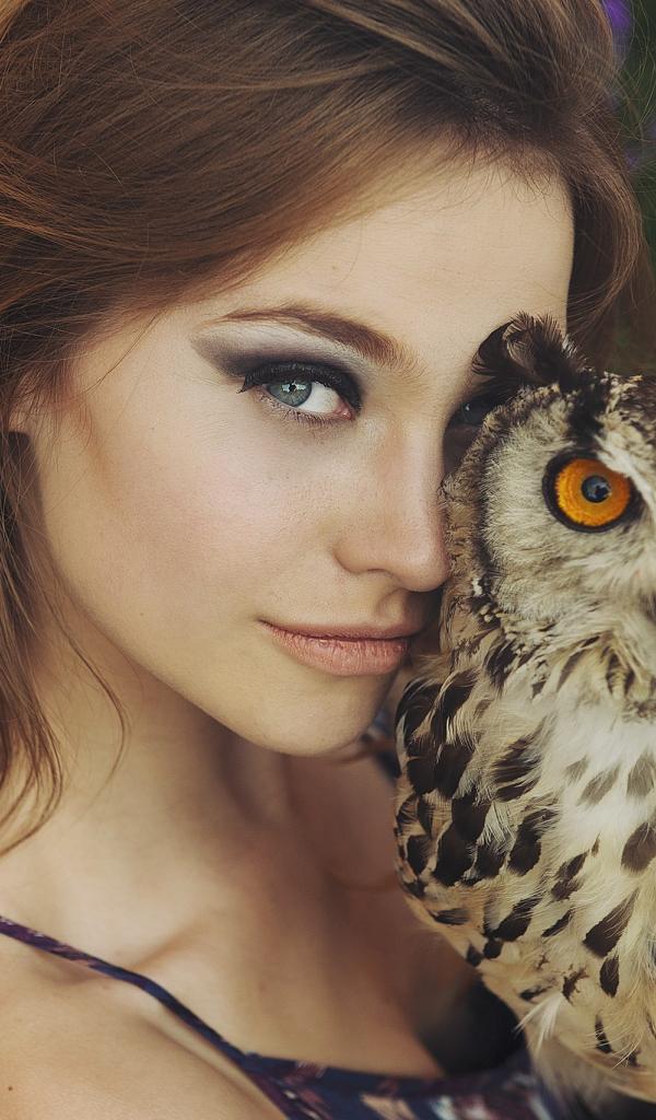 » Wallpaper Beautiful brunette girl with owl