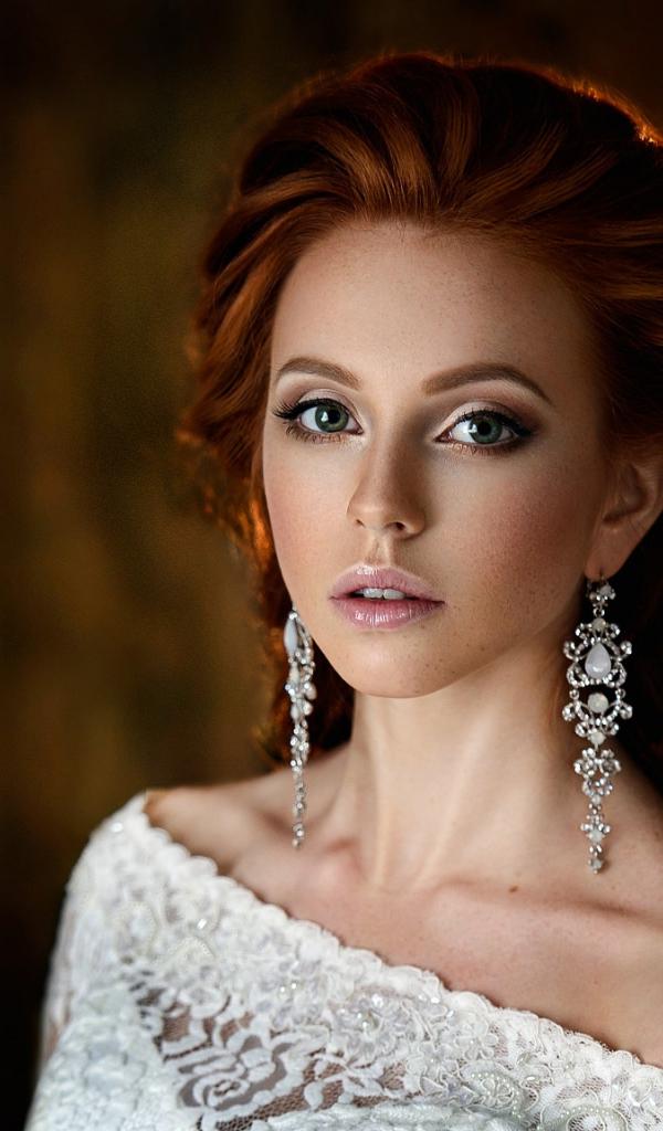 Wallpaper Beautiful red-haired girl in a white dress