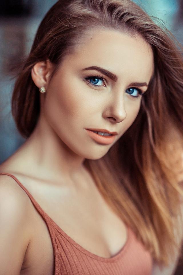 Wallpaper Beautiful blue-eyed girl with her hair