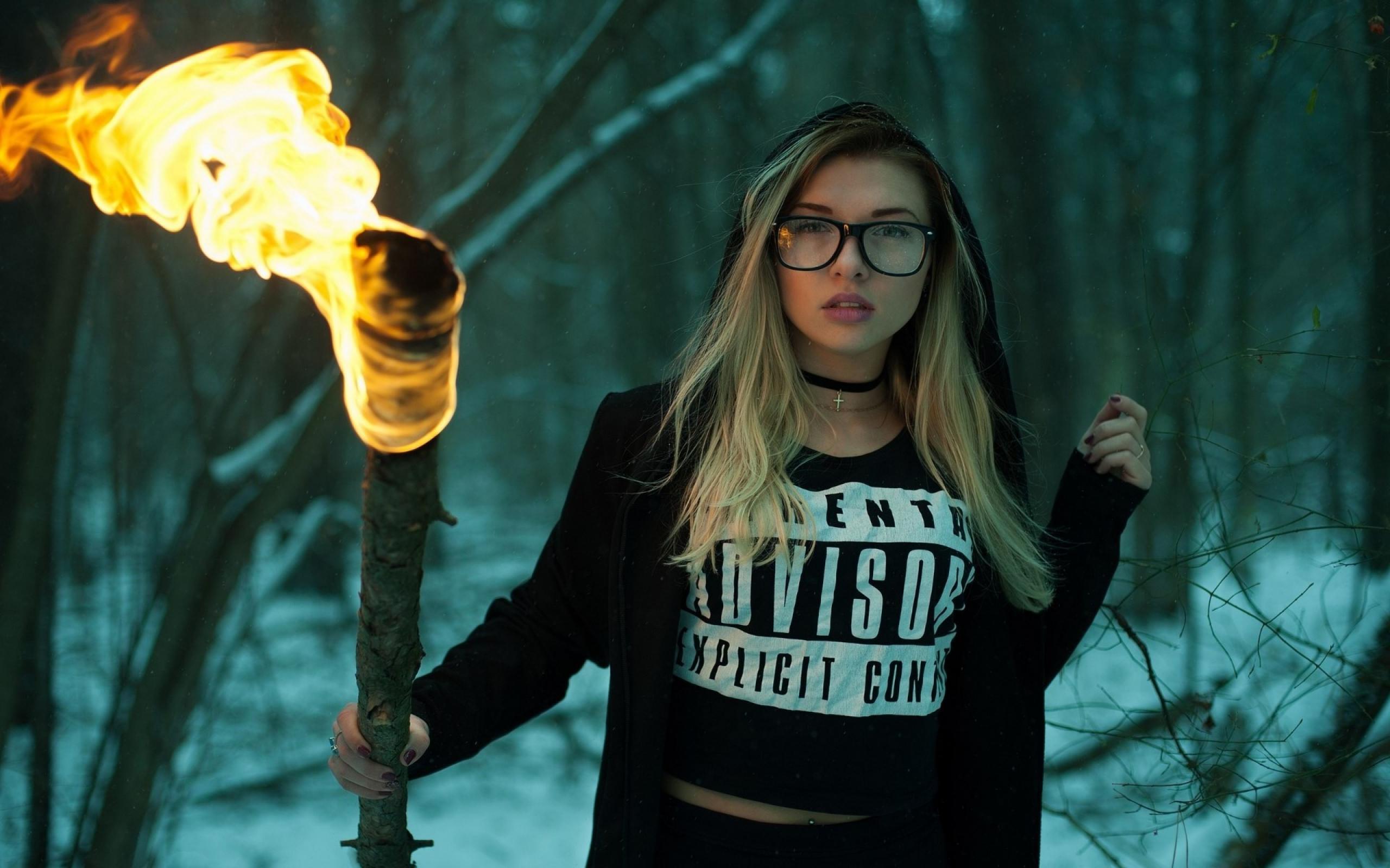 Wallpaper Girl blonde with a torch in his hand