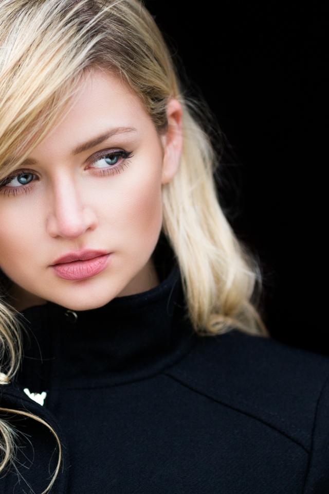 Wallpaper Blond girl in a black coat