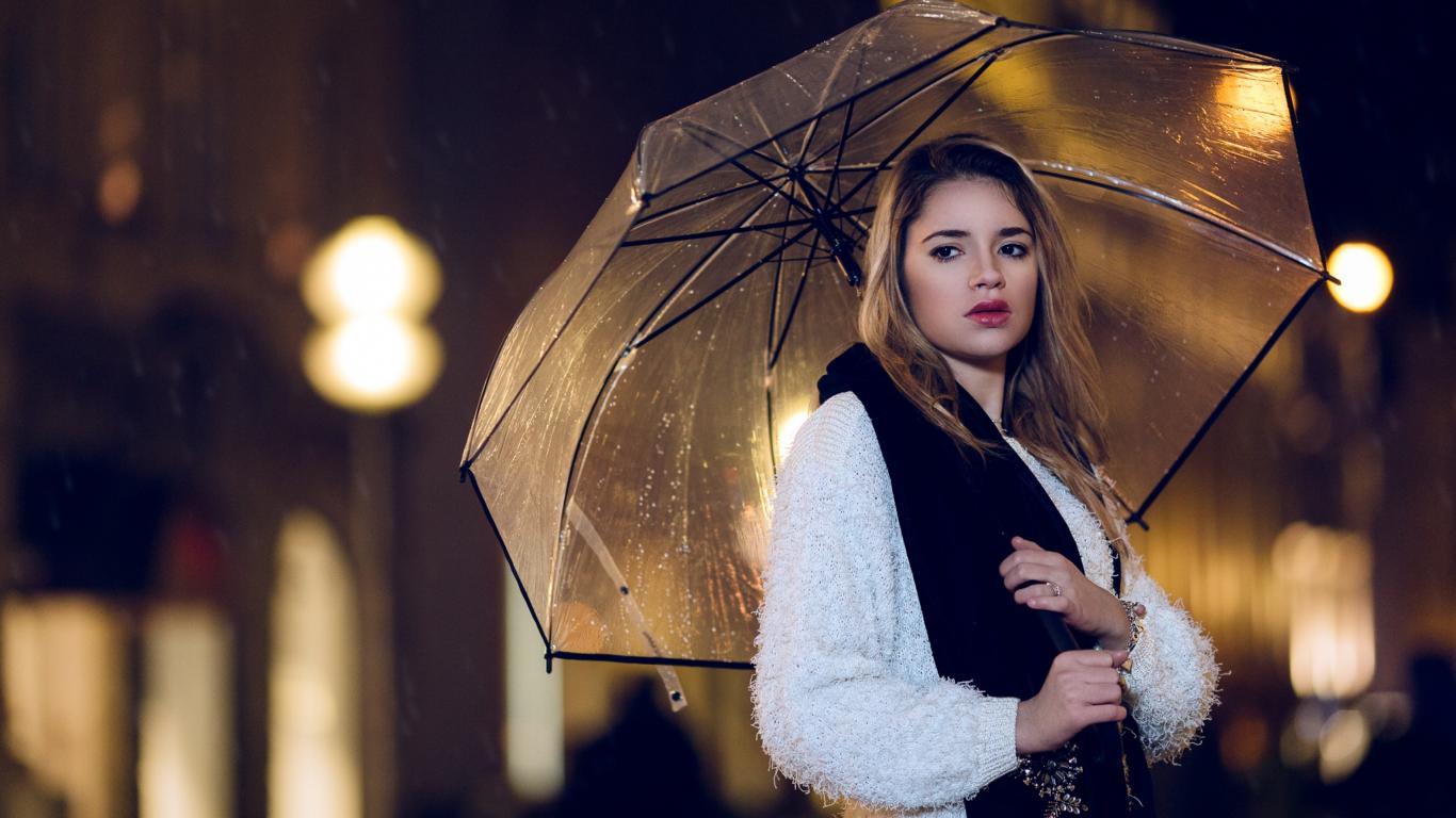 Wallpaper Young beautiful girl under an umbrella