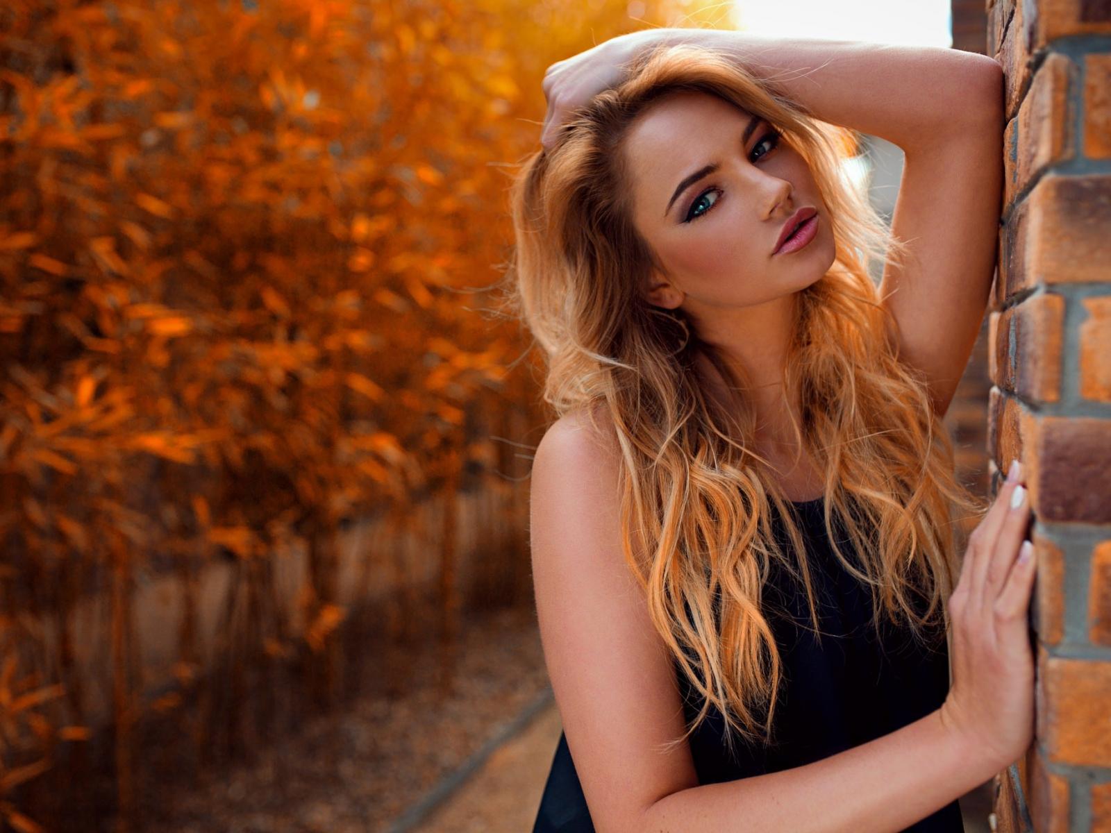 Wallpaper Blue-eyed girl blonde against the wall