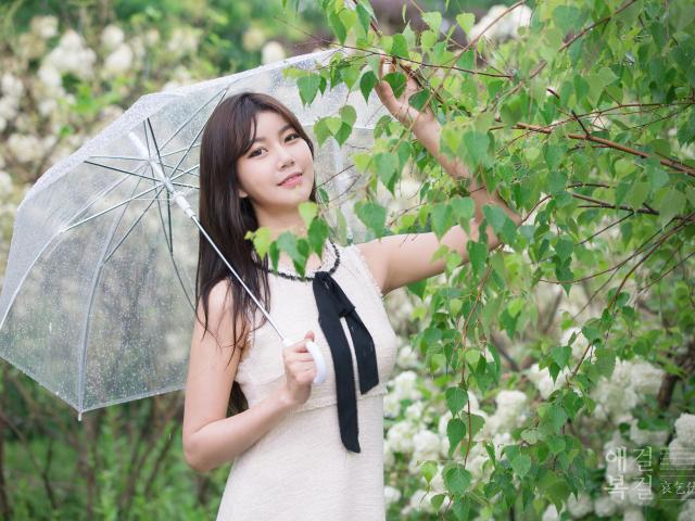 Wallpaper Beautiful Asian girl with a transparent umbrella
