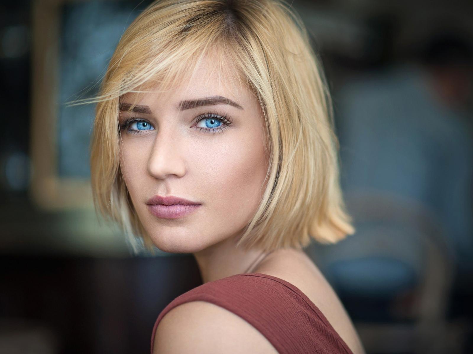 Wallpaper Blonde girl with short hair and blue eyes