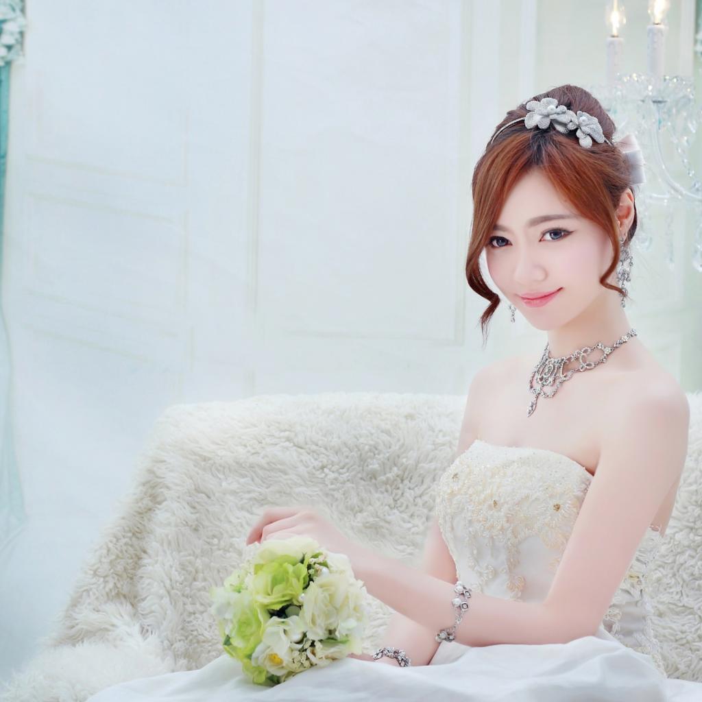 Wallpaper Asian girl in white wedding dress