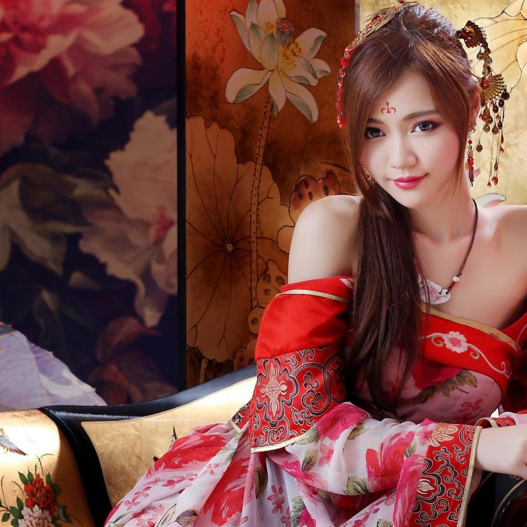 Wallpaper Beautiful Asian girl in kimono