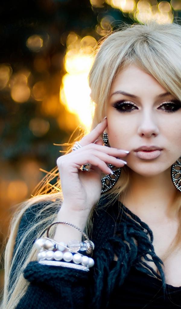 Wallpaper Blond girl with big earrings in the ears