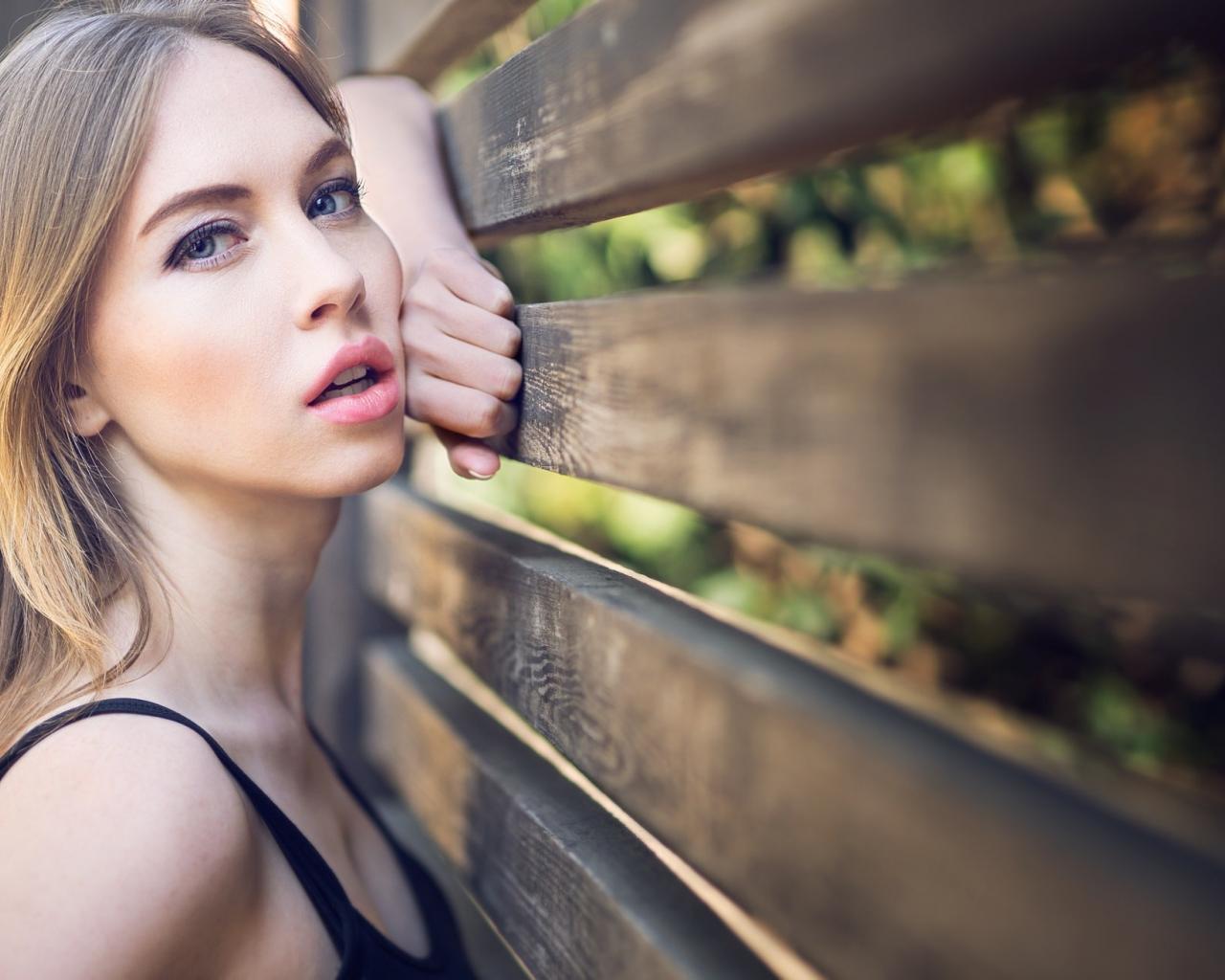 Wallpaper Beautiful blue-eyed girl at a wooden fence