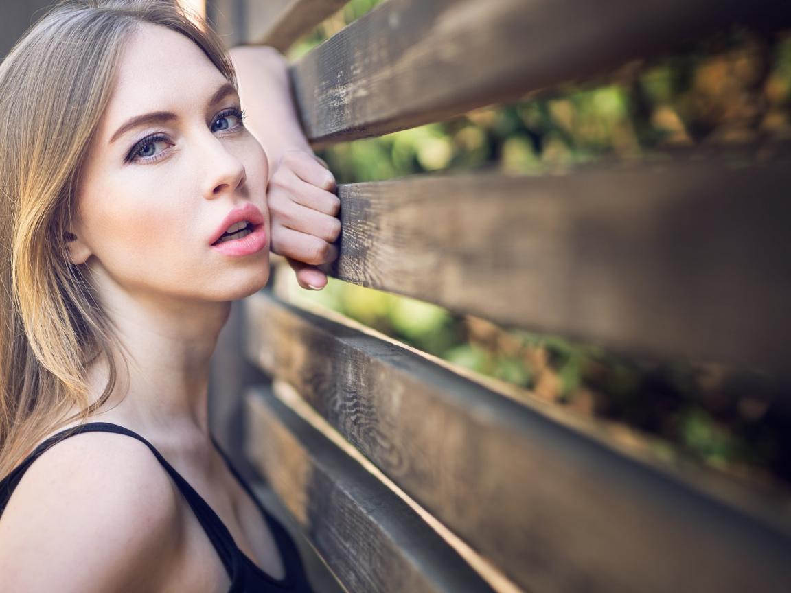 Wallpaper Beautiful blue-eyed girl at a wooden fence
