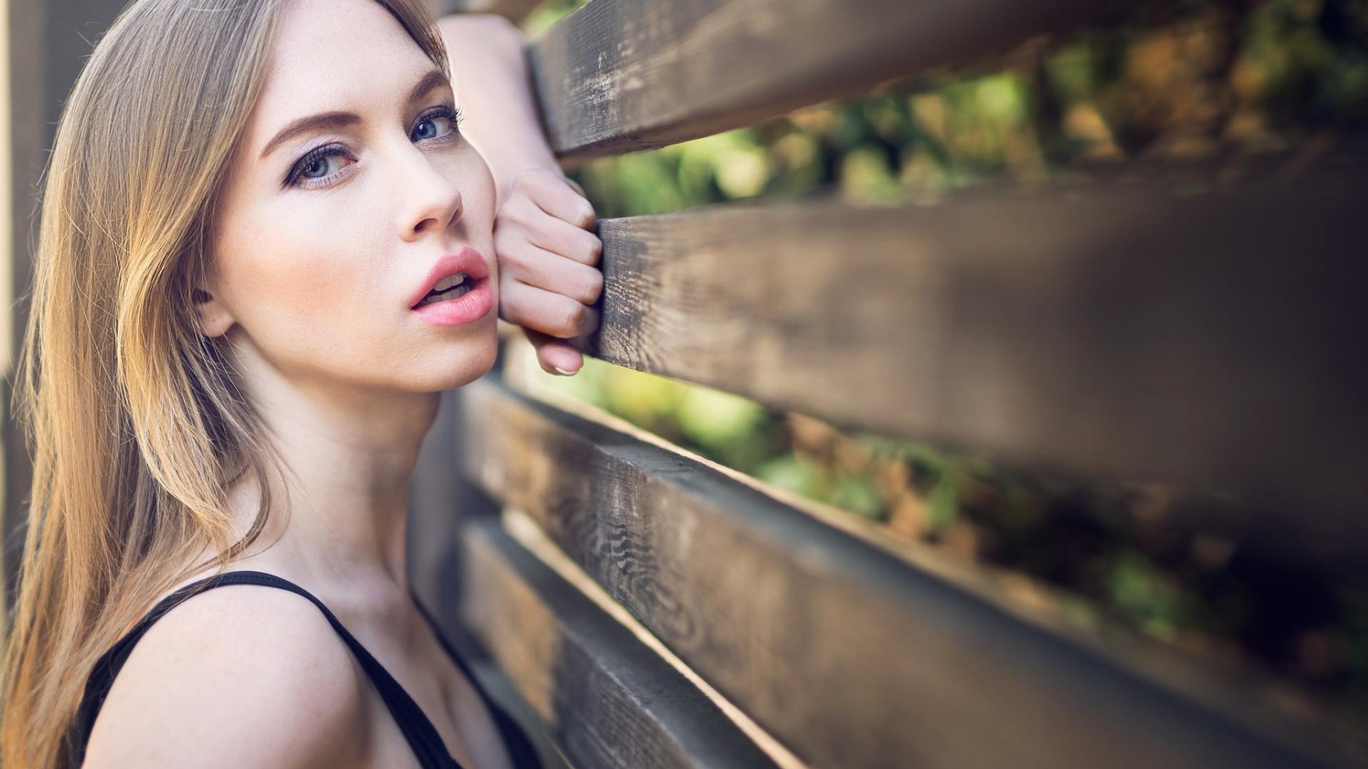Wallpaper Beautiful blue-eyed girl at a wooden fence
