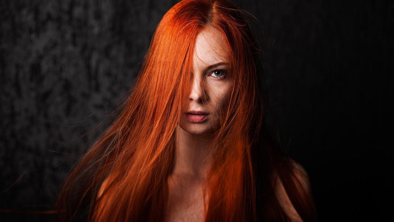 Wallpaper Bright red hair, blue-eyed girl