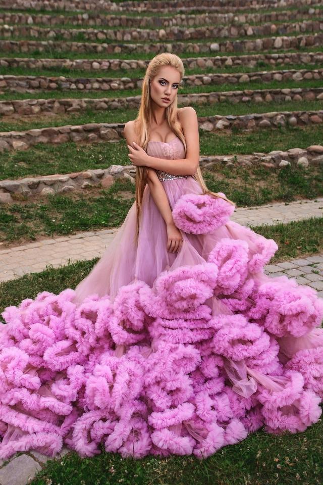 Wallpaper Blonde girl in a beautiful fluffy pink dress