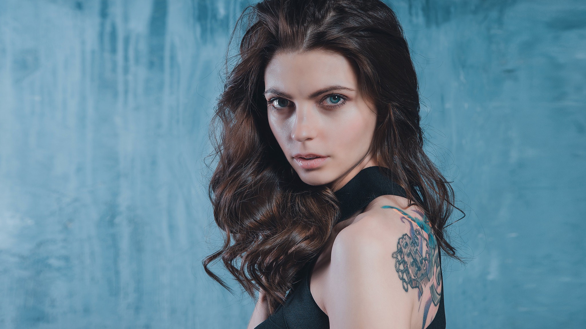 Wallpaper Blue-eyed girl with a tattoo on her back