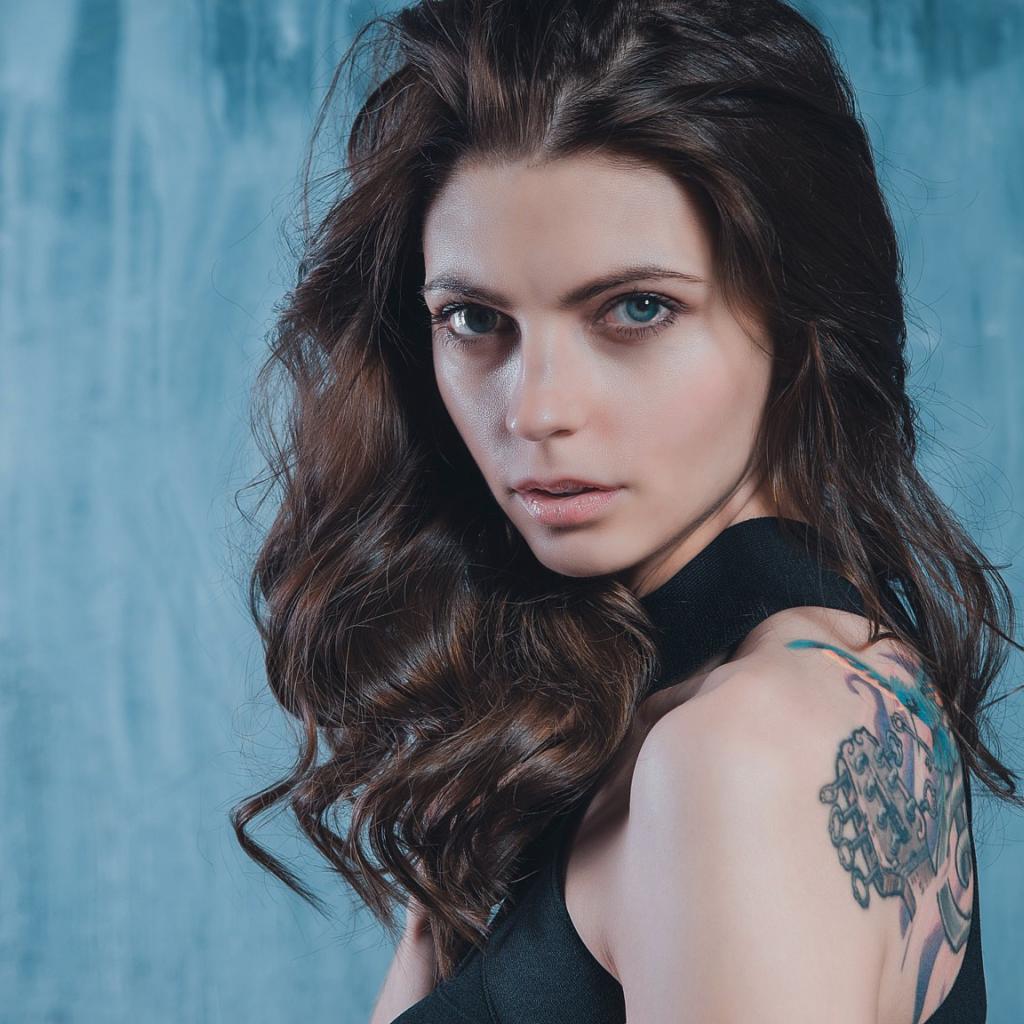 Wallpaper Blue-eyed girl with a tattoo on her back