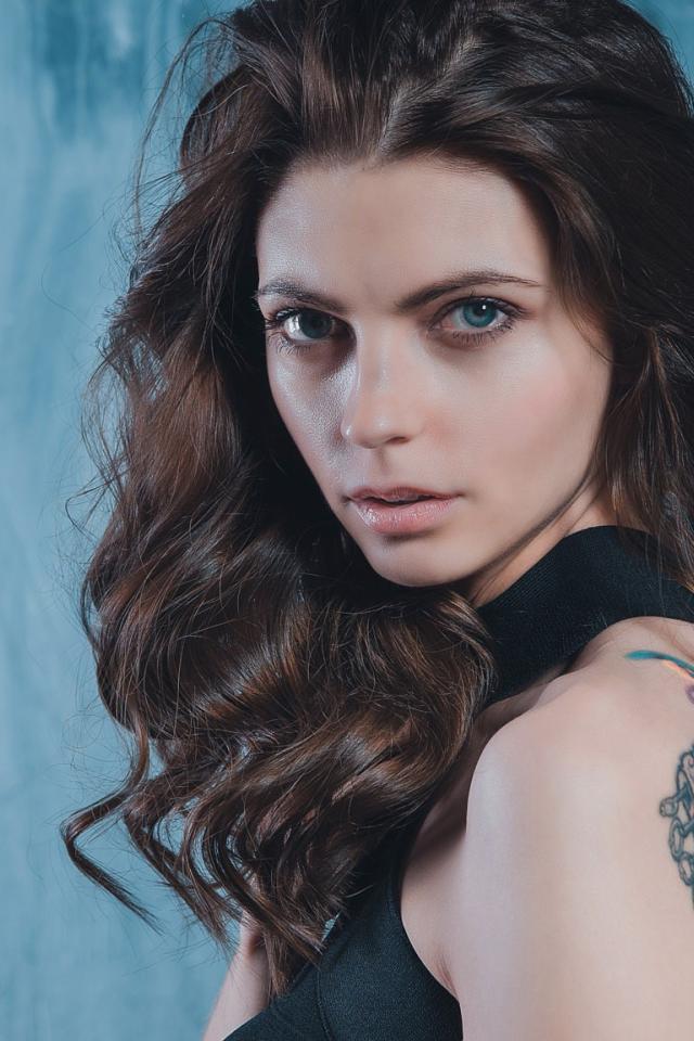 Wallpaper Blue-eyed girl with a tattoo on her back