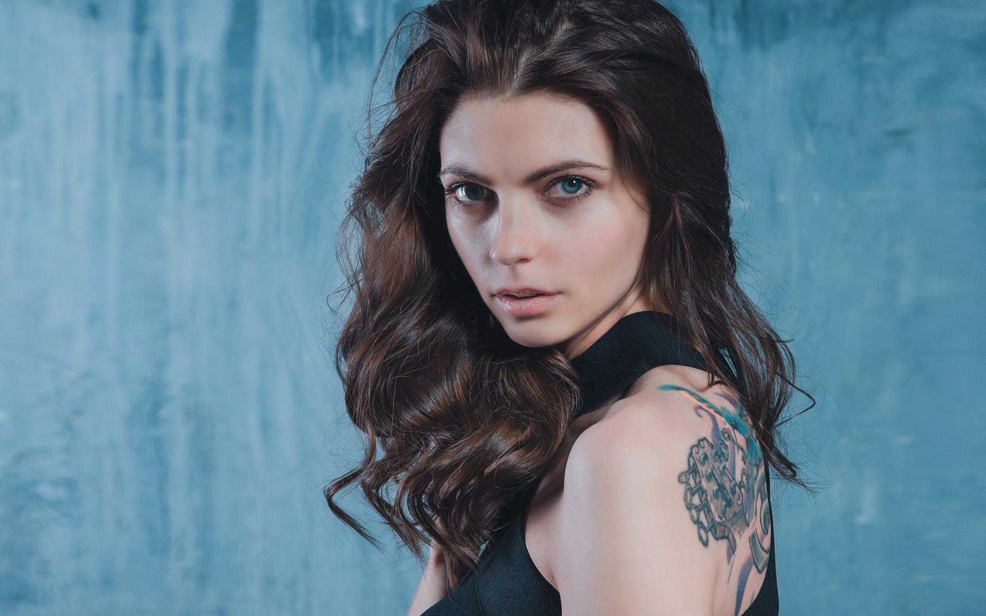 Wallpaper Blue-eyed girl with a tattoo on her back