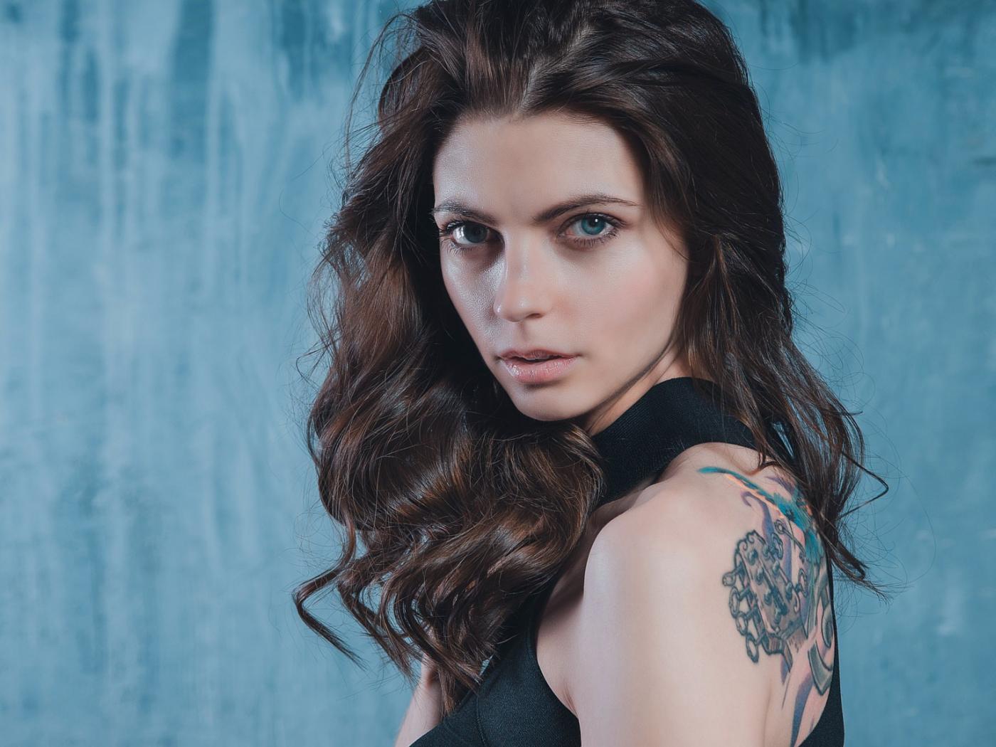 Wallpaper Blue-eyed girl with a tattoo on her back