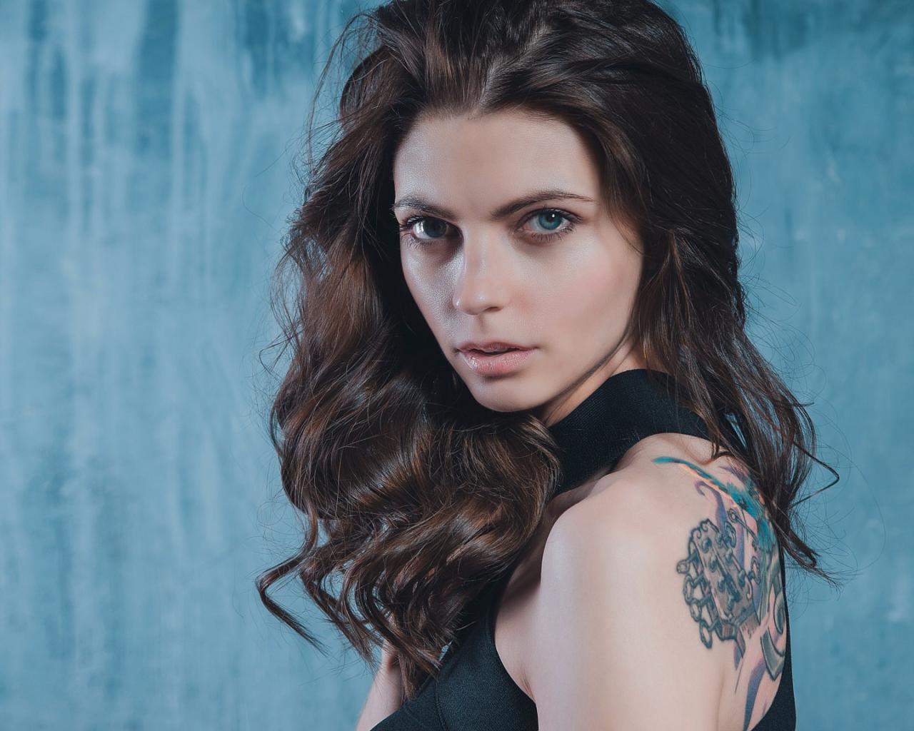 Wallpaper Blue-eyed girl with a tattoo on her back