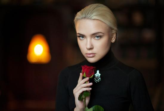 Wallpaper Blond girl with red rose