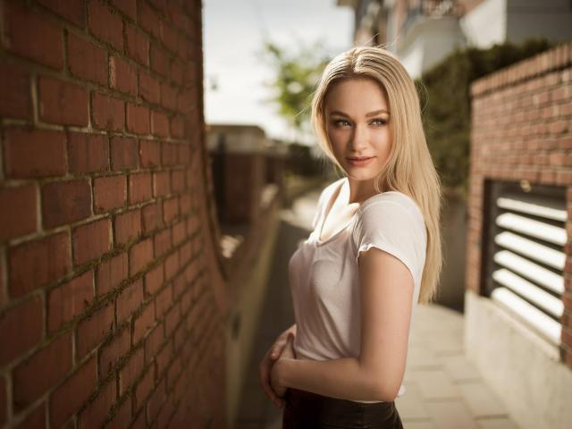 » Wallpaper Young blonde girl near a brick wall