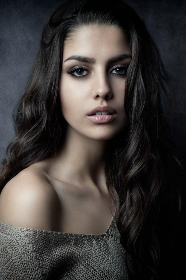 Wallpaper Delicate beautiful brunette girl with long hair