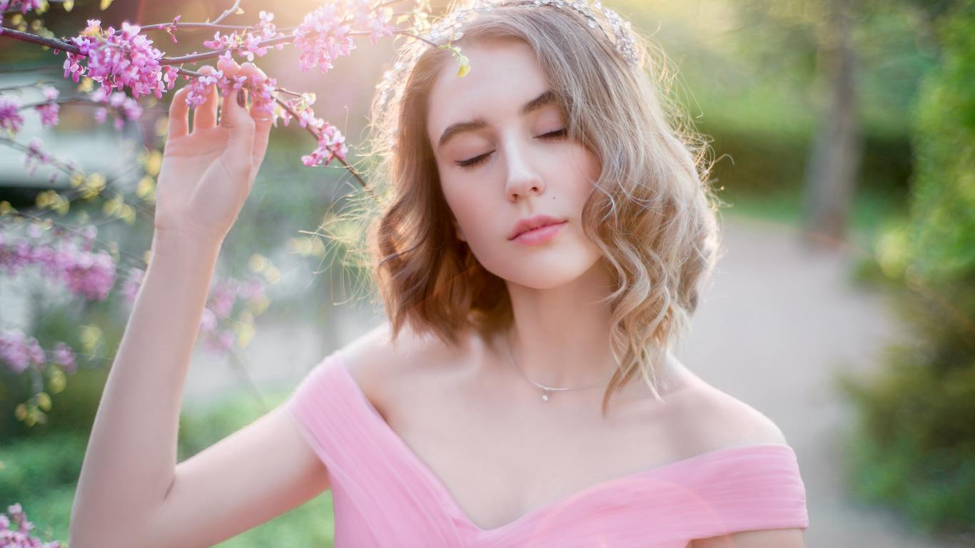 Wallpaper A tender young girl in a pink dress