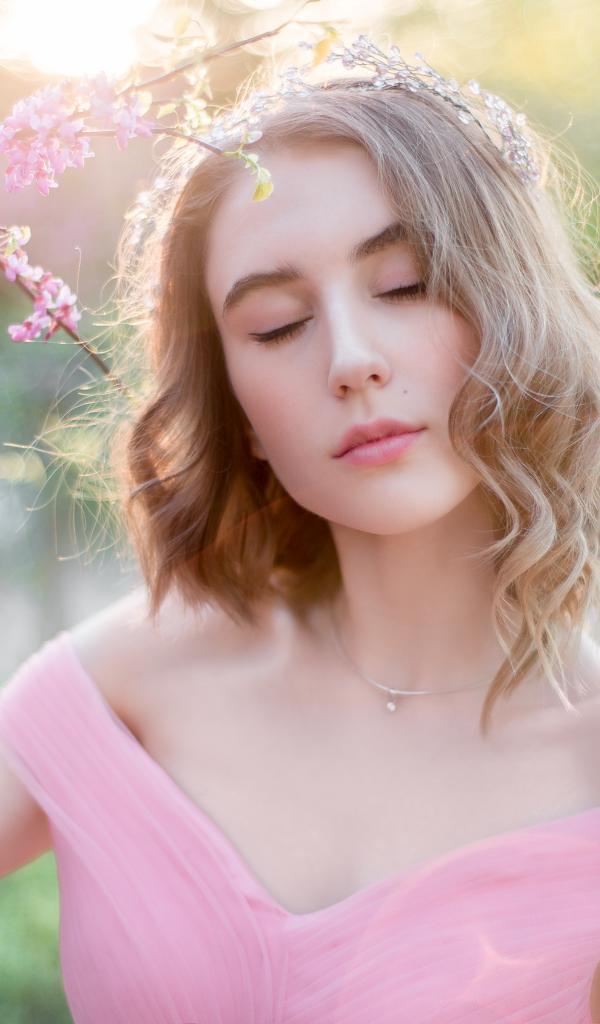 Wallpaper A tender young girl in a white dress with a wreath on her head