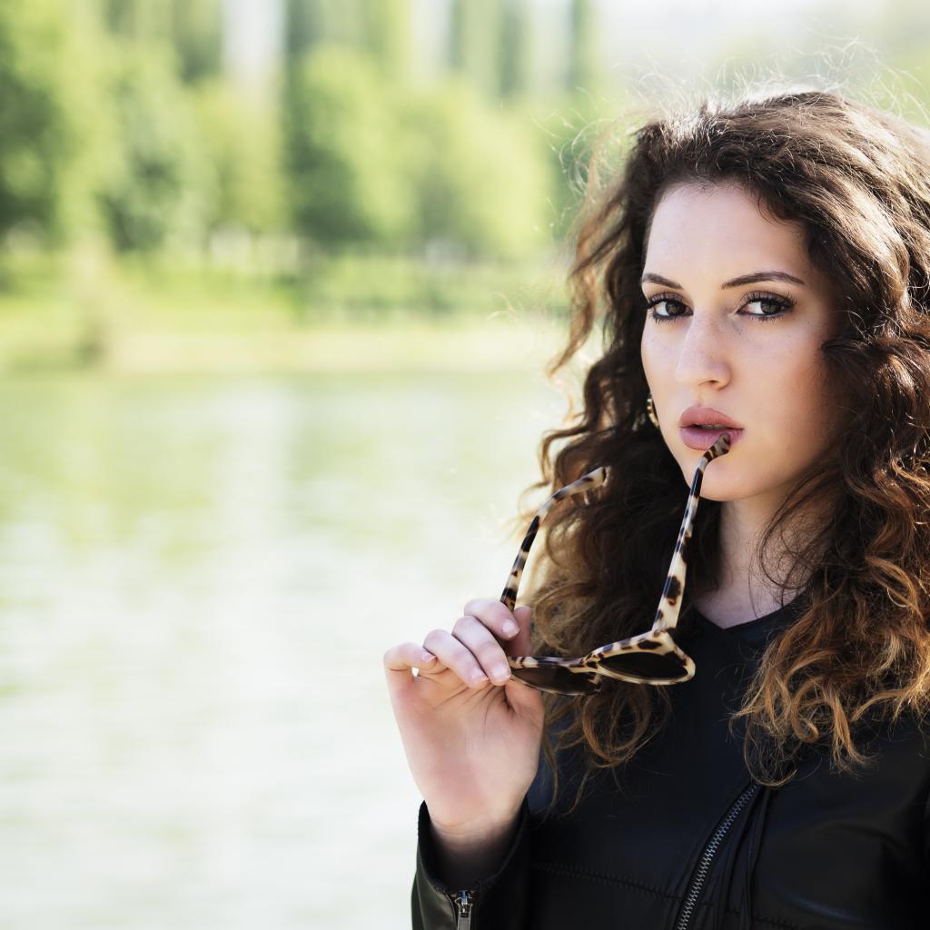 Wallpaper Beautiful girl with wavy hair with glasses in hands
