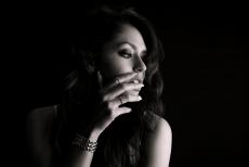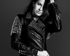 Wallpaper Beautiful girl in a leather jacket Anna Lewandowska, black and white photo