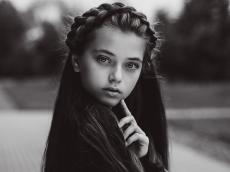 Wallpaper Little girl with a beautiful haircut black and white photo
