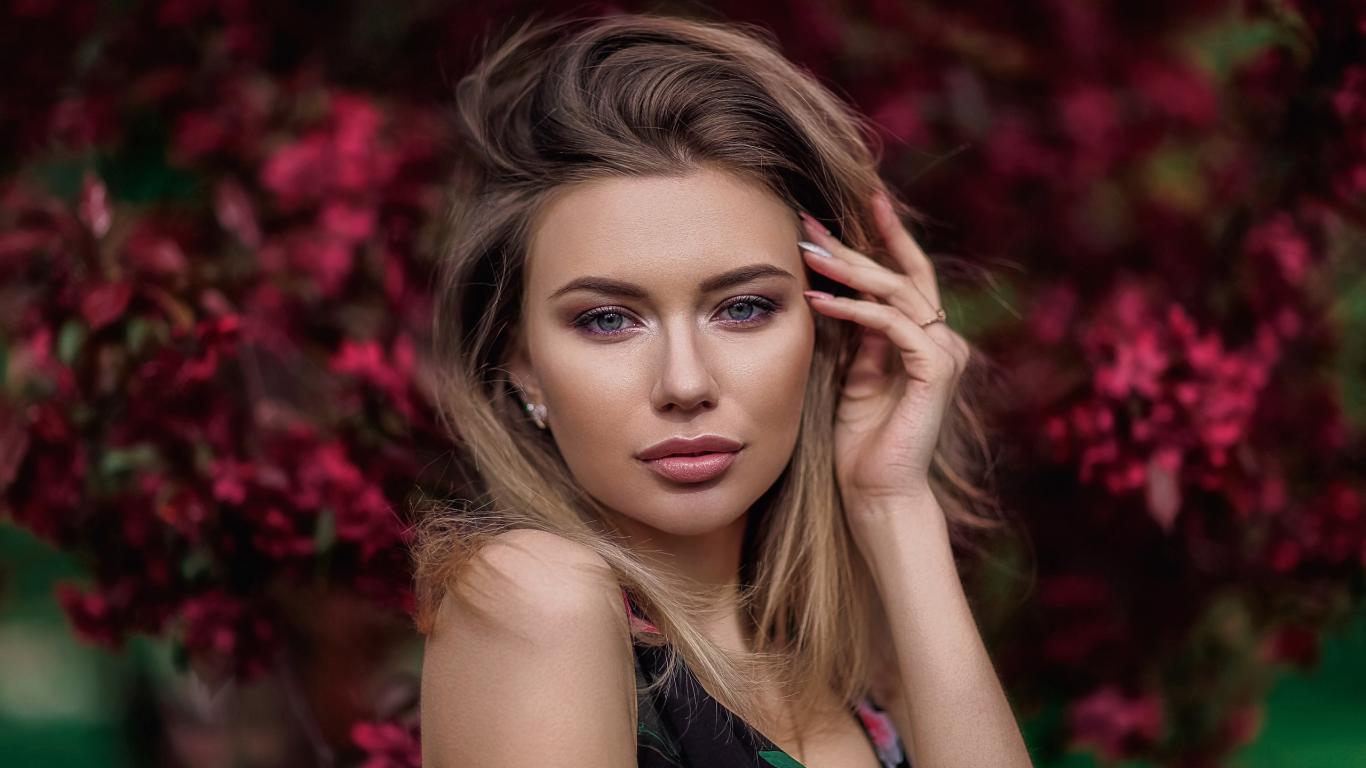 Wallpaper Bright beautiful girl in a colorful dress