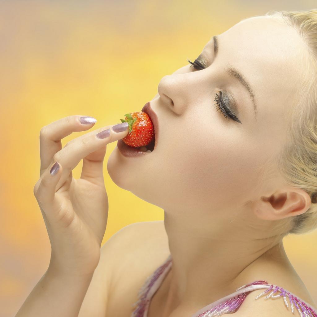 Wallpaper Beautiful blond girl in a santa girl costume with a bag in her hands