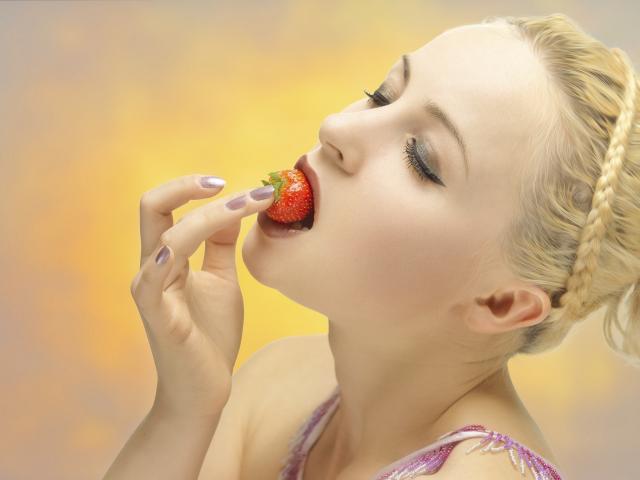 Wallpaper Beautiful blond girl in a santa girl costume with a bag in her hands