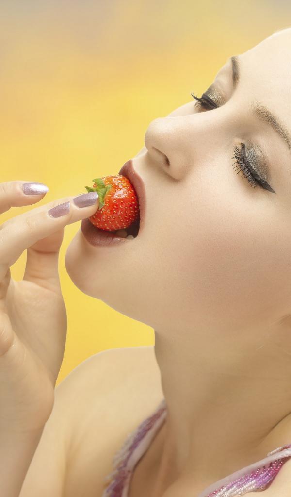 Wallpaper Beautiful blond girl in a santa girl costume with a bag in her hands