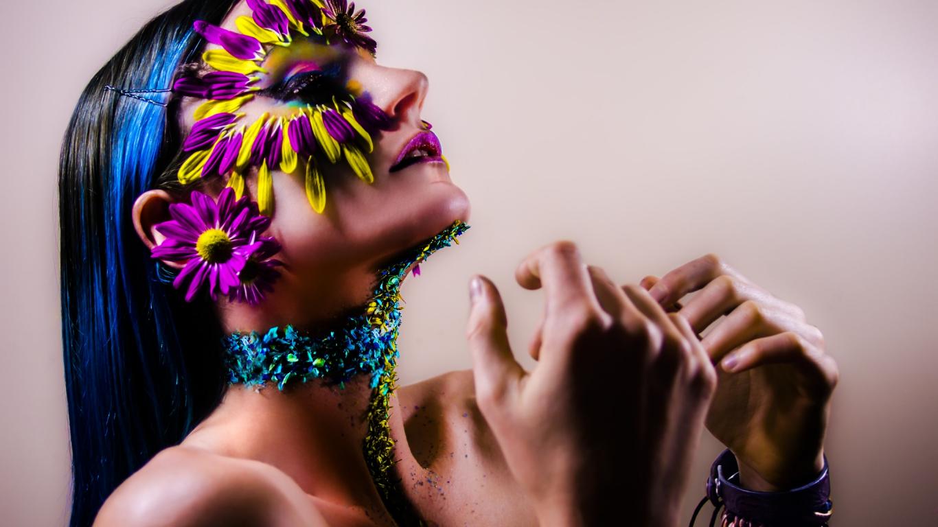 Wallpaper A girl with a decorated face petals and bright make-up