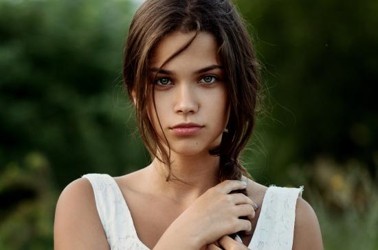 Wallpaper Green-eyed girl with a scythe on her head