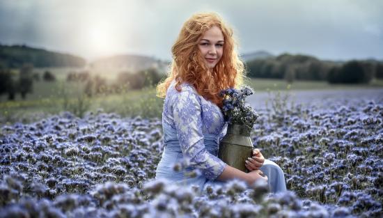 Wallpaper Beautiful red-haired girl collects flowers