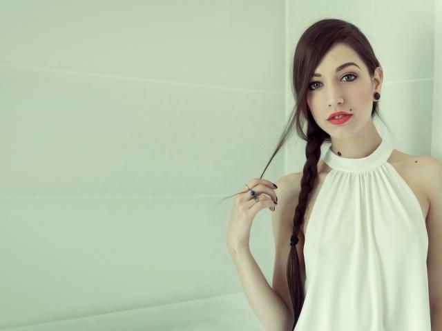Wallpaper Beautiful girl with red lips braided in a braid hair