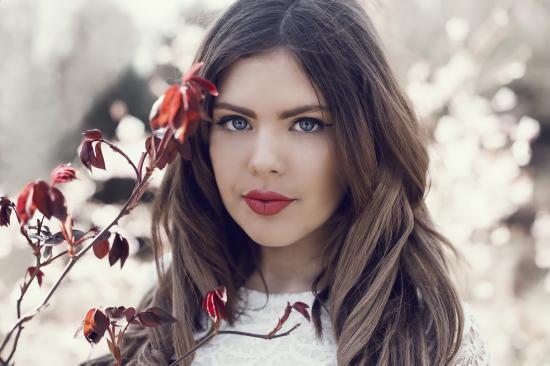 Wallpaper Blue-eyed beautiful brunette girl with red lips