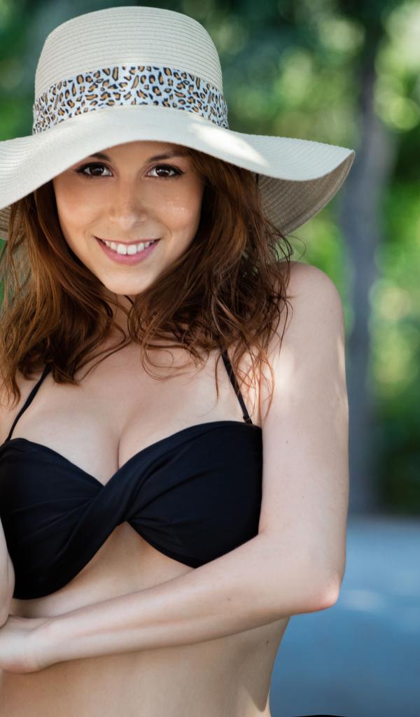 Wallpaper Beautiful girl in a hat and a black swimsuit
