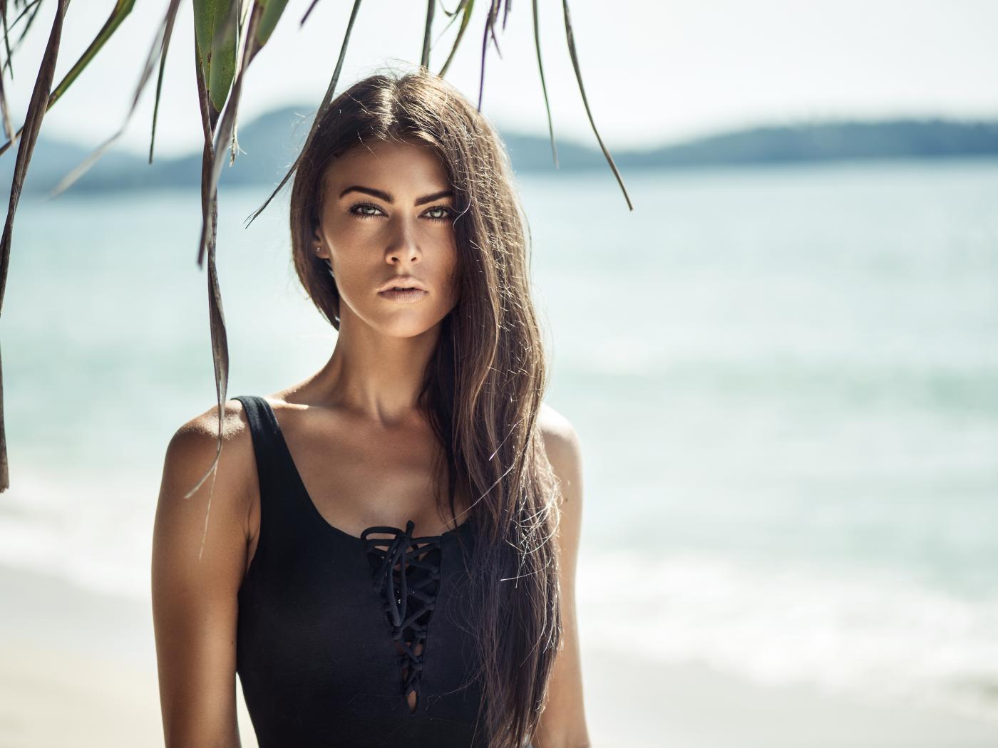 Wallpaper Stylish brunette with long hair on the beach