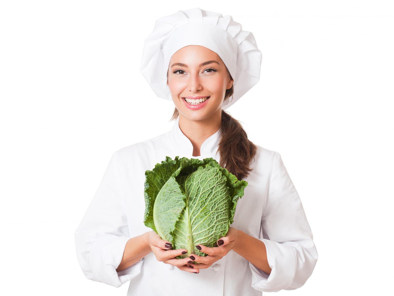 Wallpaper Beautiful girl cook with green cabbage in hands