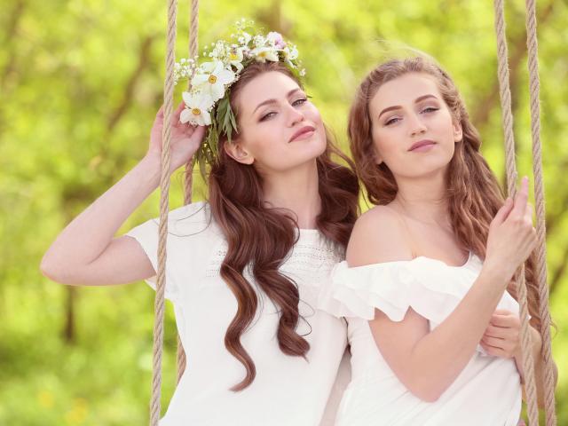 Wallpaper Two beautiful long-haired girl brown-haired on a swing