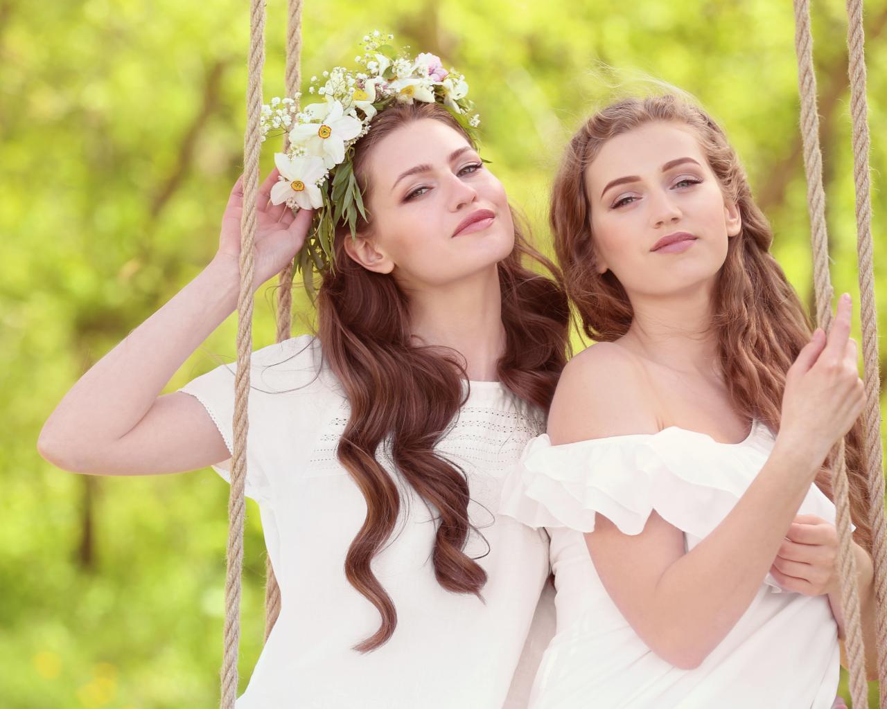 Wallpaper Two beautiful long-haired girl brown-haired on a swing