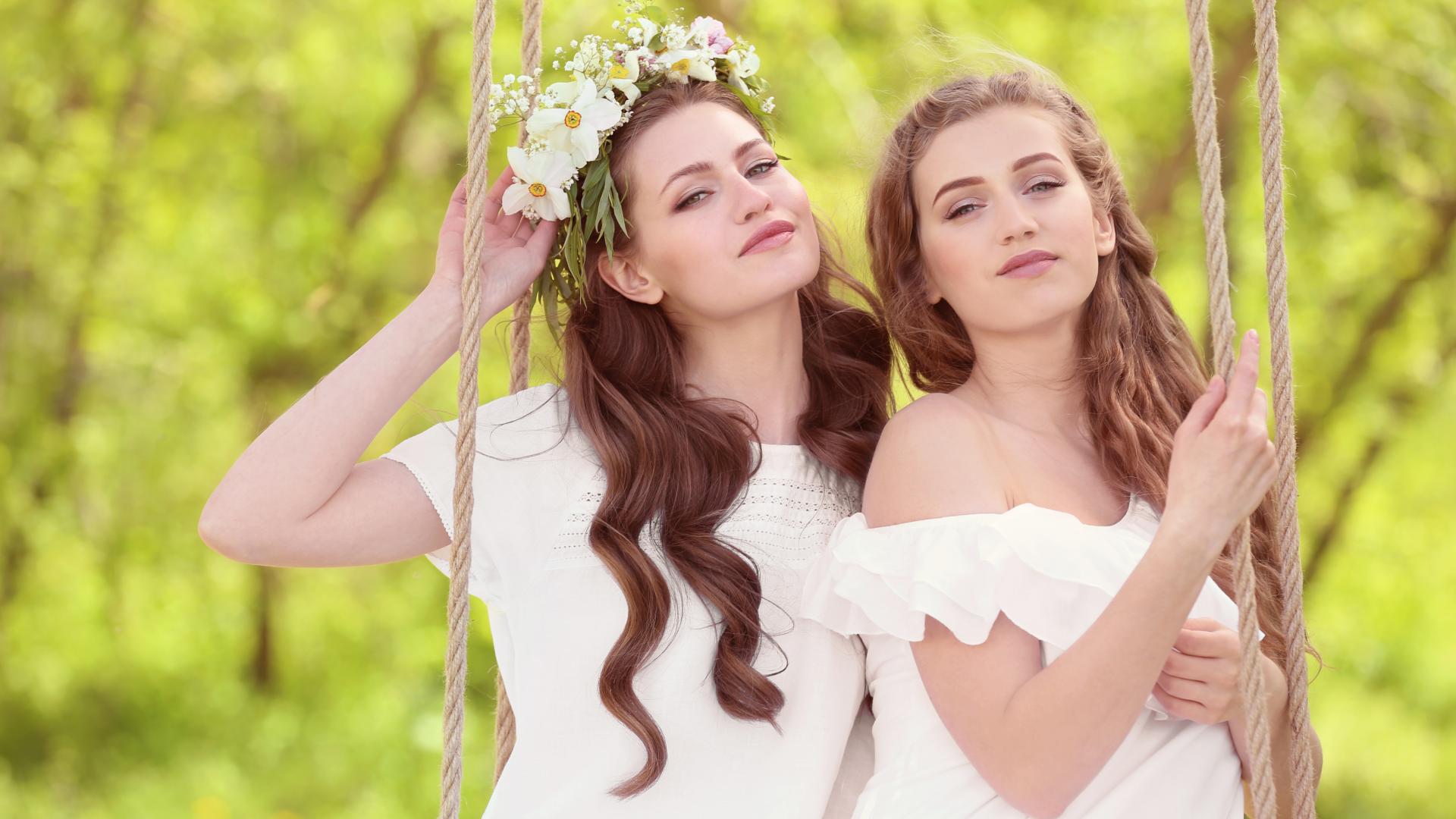 Wallpaper Two beautiful long-haired girl brown-haired on a swing