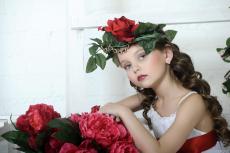 Wallpaper Beautiful girl with a wreath of mountain ash on her head and with red apples in her hands